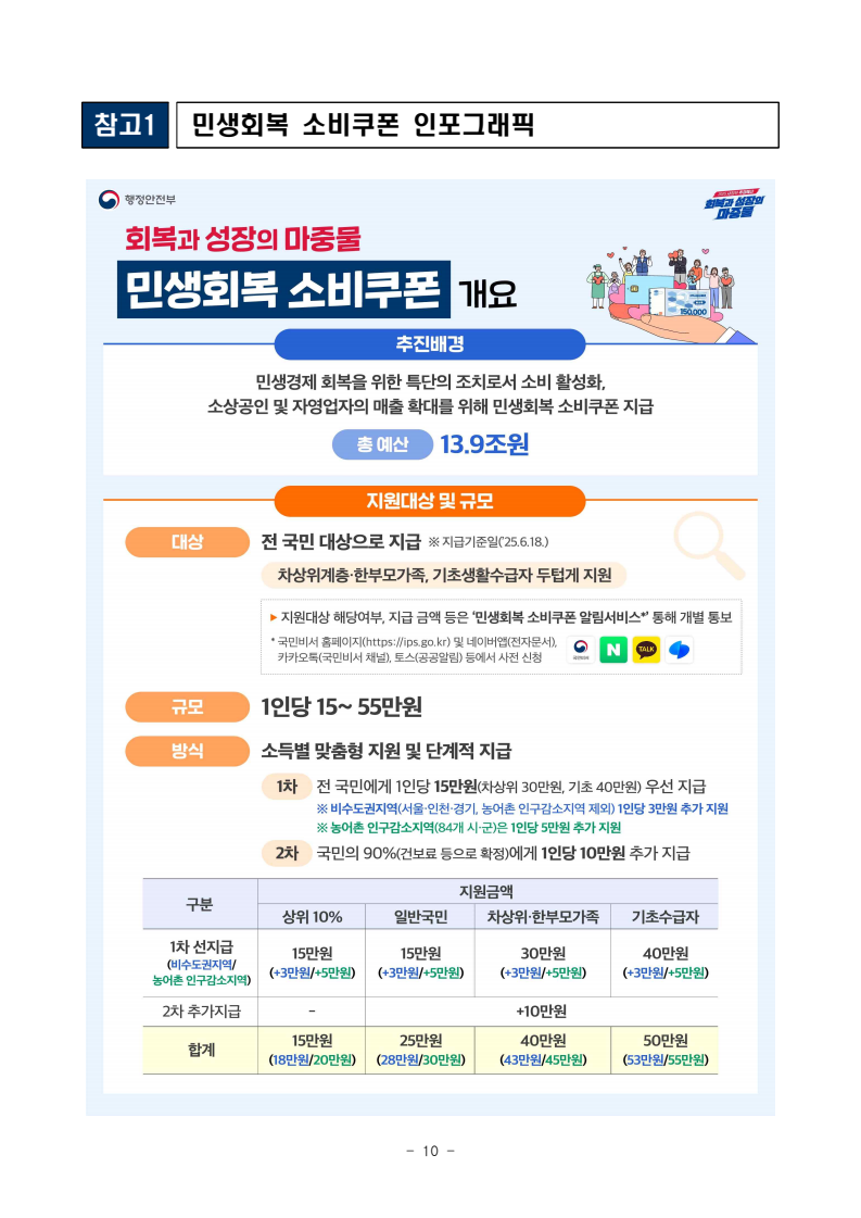 - 목적 : 경기 회복, 소비 촉진, 소상공인·자영업자 지원